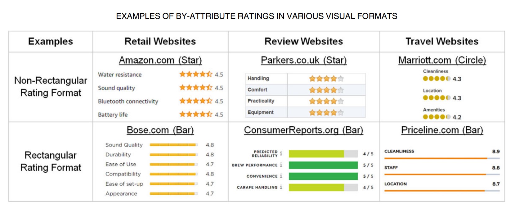 As the digital marketplace continues to evolve, online ratings are being displayed in various formats. The goal is to achieve visual influence and ultimately, have authority over product choice.